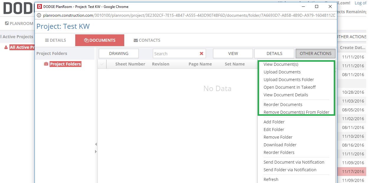 If you have a Dodge Global Network subscription, projects can be moved from the Network directly into Dodge PlanRoom.
