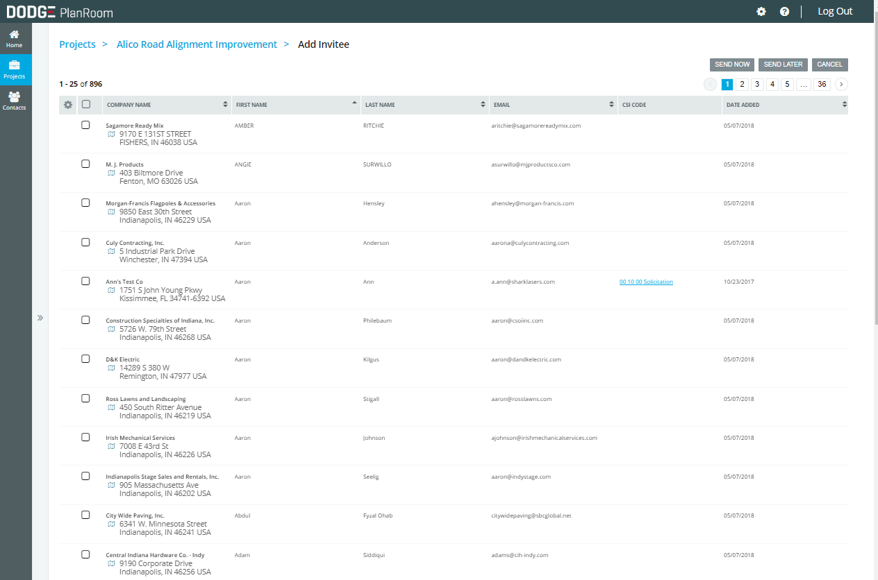 A new screen will appear with a listing of all your contacts. You can select which contact to add as an invitee by selecting the check box next to their name. Once a selection is made, click the Send Now button. This step will generate an email to your contact, inviting them to view the project.