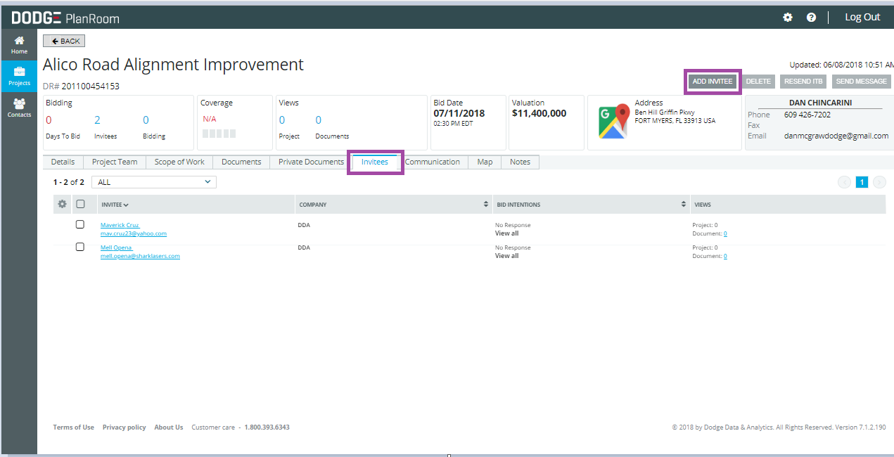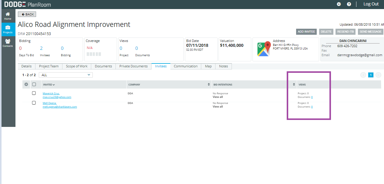 When you view the project invitees, you will now see a list of who you invited to this specific project.
