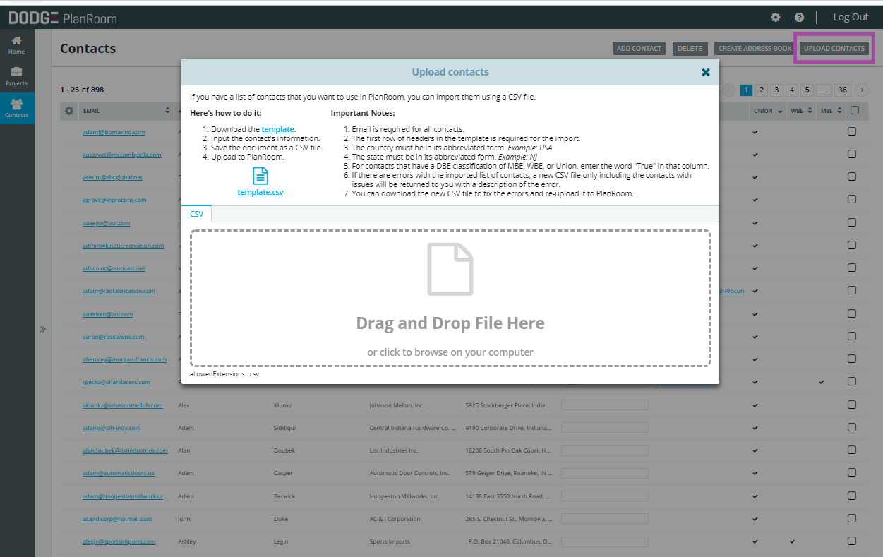 It is recommended that you add contacts to your PlanRoom so that they will be available to collaborate with you on your projects. Address books should be created to manage your contacts and keep them organized.