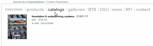 Once you click on the company name under browse results the product navigation and the company navigation page is displayed.