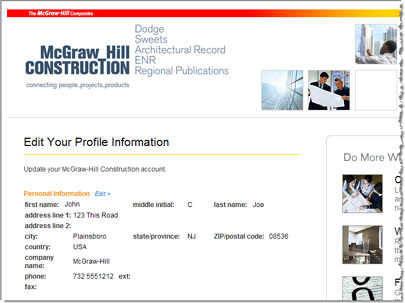 Click on the my account link and you will be brought to your McGraw-Hill Construction account information.