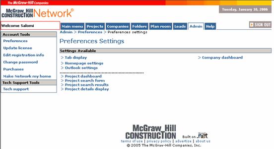 Once you are successfully logged into our Project Network you can access all features that are available to you depending on your License.