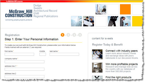 4. You will be taken to the McGraw-Hill Construction registration page.