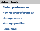 A brief description of each of the Admin tools follows. For more information on any of the Admin tools, click one of the links below: