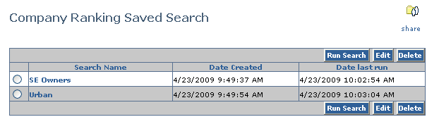 - Public: These are ranking report searches created by other users within your license that have given you access to their searches.