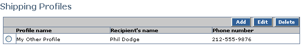 - Click Add to add a new profile. Fill out the fields on the form and click Save.