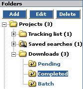 - On the Folders tree on the Folders tab, navigate to Projects > Downloads > Completed.