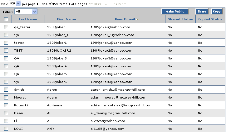 To copy the search/tracking list to particular users, select the checkbox(es) next to the user(s) and click the Copy button.
