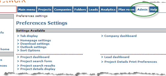 • Project dashboard - allows you to set the appearance of your Project Dashboard. You may display Saved Searches, Tracking Lists and Projects in your Plan Room.