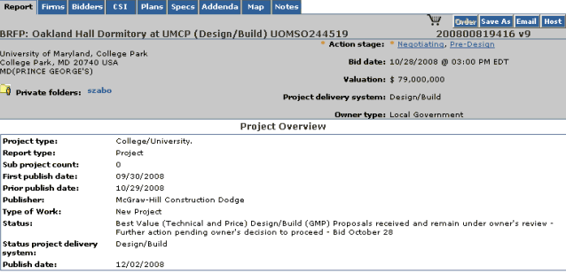 For example, some projects may not have plans and specs listed to date, so those two buttons will be grayed out. Or, if a project does not have a Bidders List, that button will be grayed out.