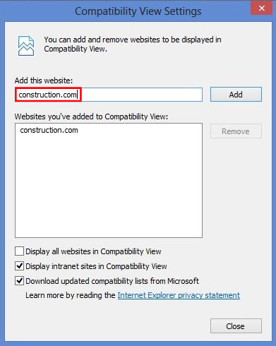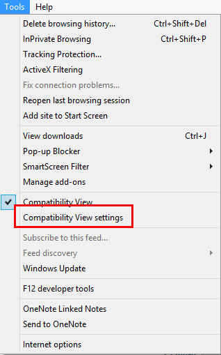 Launch Internet Explorer and select Tools | Compatibility View settings