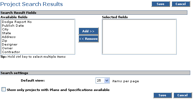 - Mark the checkbox if you wish to Show only projects with Plans and Specifications available.