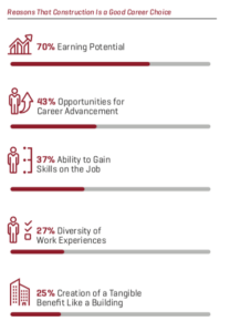 Well, what we learned is that they really liked the fact that they think the earning potential in construction is strong. That was selected by 70% of them as one of their top three reasons. We also see almost half looking for opportunities for career advancement. They really feel like there’s a path for them to move forward in their companies. So, 43% say that’s a really valuable part of their career. And we see more than a third, about 37% talk about the ability to gain skills on their job is something that they really value.