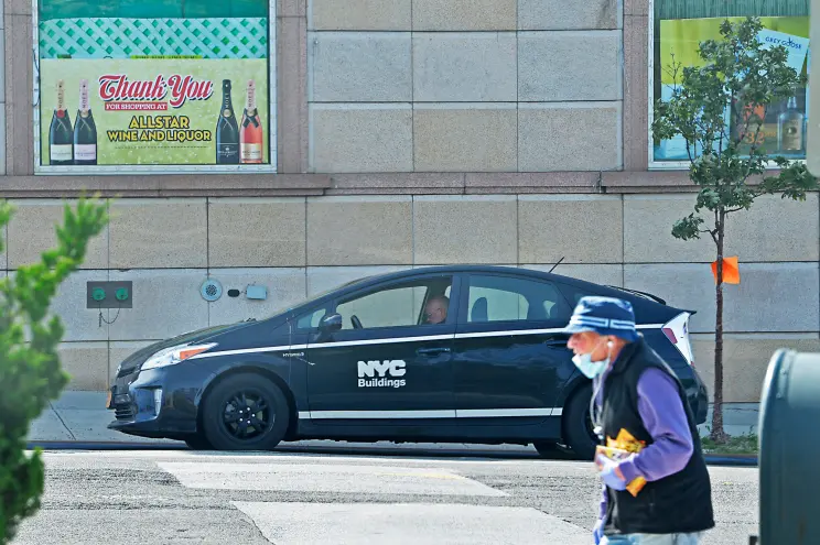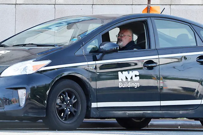 A Department of Buildings (DOB) inspector waits for contractors to follow to job sites in Queens.