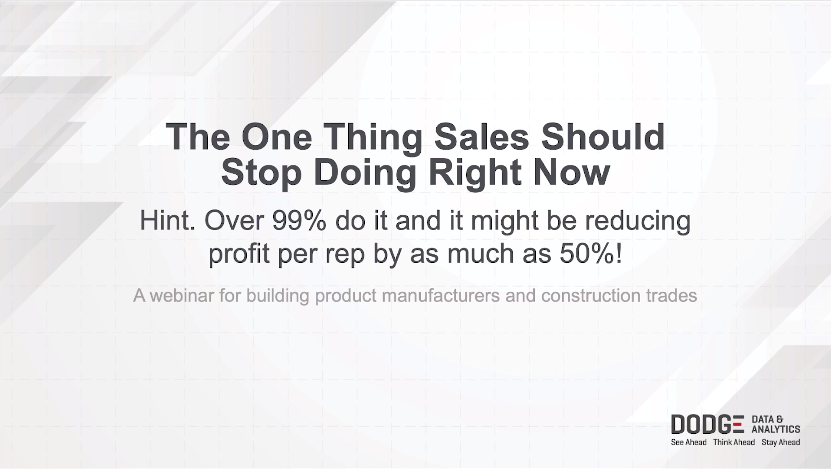 Join experts from Dodge Data & Analytics to learn how this one small change in your construction sales process will put you far ahead of all of your competitors, help in selling construction materials and could boost profit per rep by 50% or more.